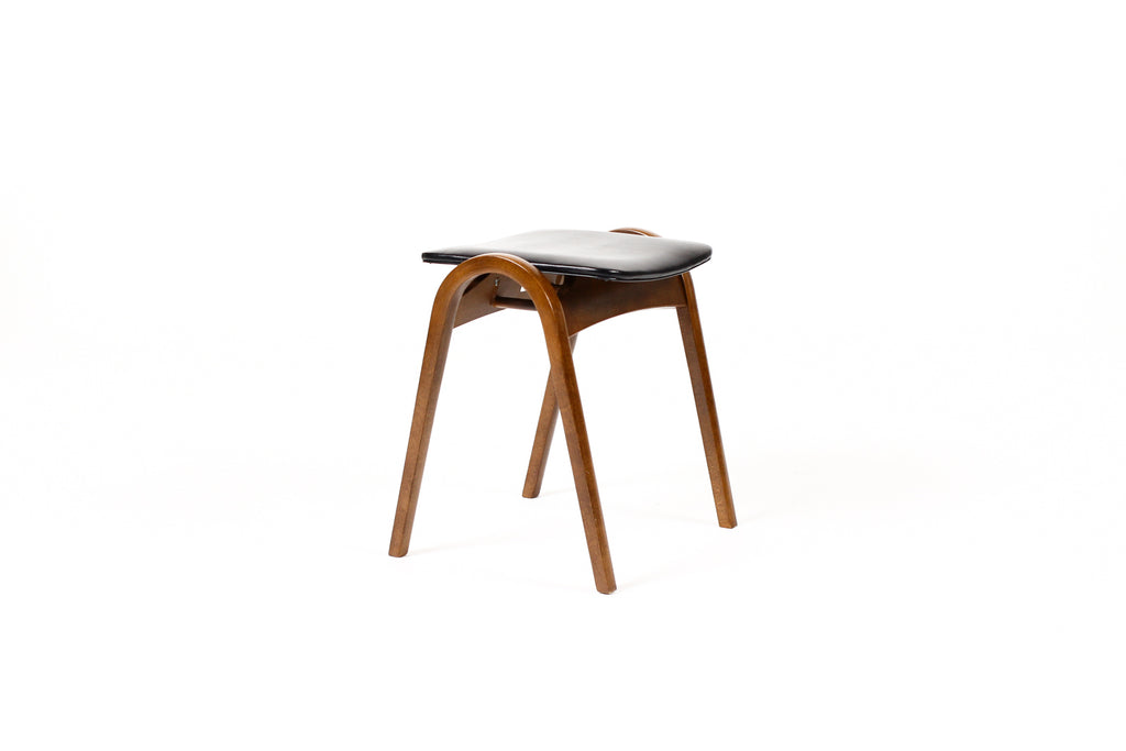 #2078 — Mid Century Vintage Stacking Bentwood Stool — Isamu Kenmochi for Akita Mokko — Black vinyl
